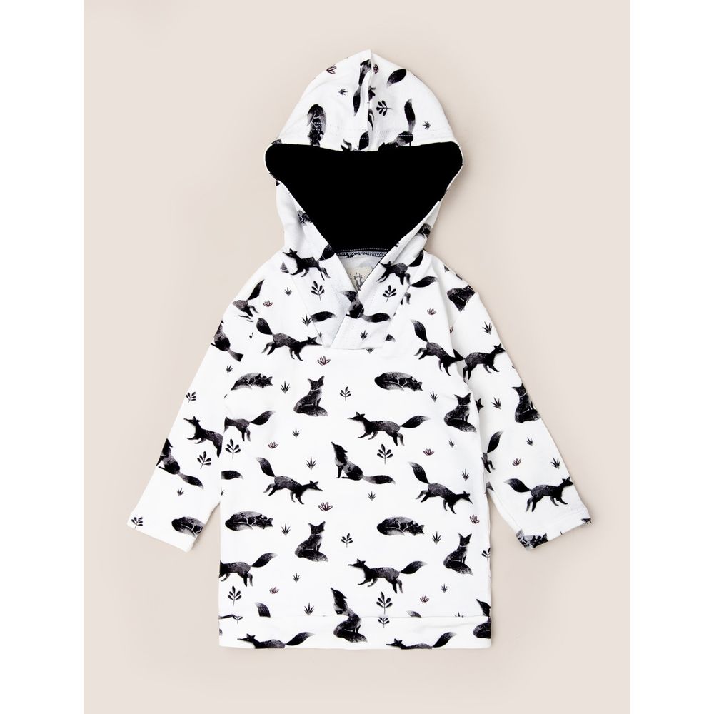 Blusa alongada de mangas longas e modelagem retinha, confeccionada em malha de viscose e elastano. Super confortável, essa peça The Mini Forest ainda tem capuz com revestimento em malha preta, que contrasta com a estampa e é puro charme. Também fica lindo usado como vestido em lookinhos modernos.