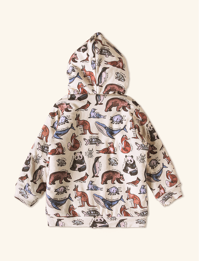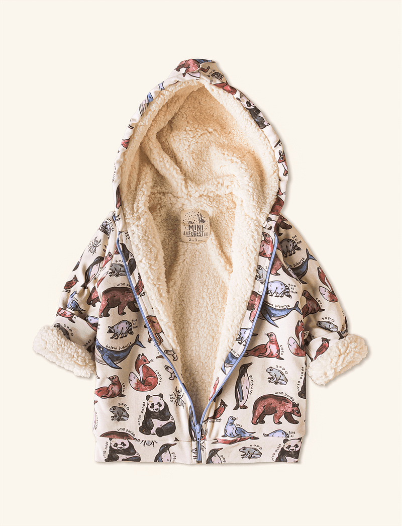 Blusa infantil unissex The Mini Forest, com modelagem retinha e mangas longas, confeccionada em malha de algodão, que é um tecido bem macio e maleável. a jaqueta infantil tem capuz, fechamento frontal em zíper e interior revestido em pelinho texturizado, para garantir que as crianças fiquem sempre quentinhas nos dias mais frios.