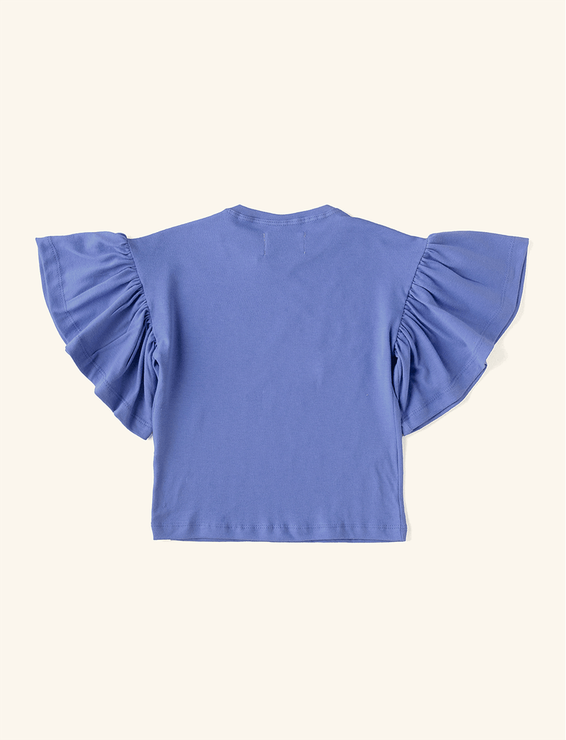 Camiseta infantil de mangas curtas com babadinho, confeccionada em malha macia de algodão, que é bem maleável. Super delicada, essa blusa é perfeita para o dia a dia da criançada, pois é muito confortável.