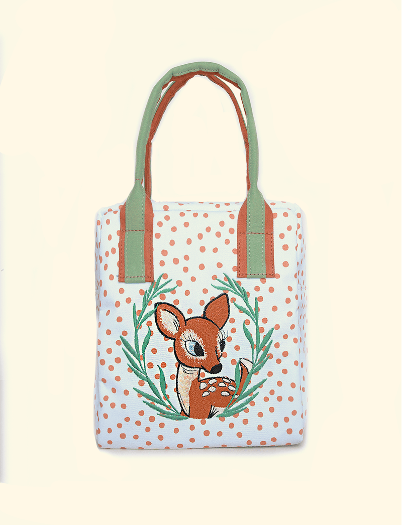 Bolsa térmica The Mini Forest feita em sarja de algodão, com fechamento em zíper na parte superior e alcinhas de mão. Tem revestimento interno em manta térmica metalizada , que proporciona o isolamento térmico prolongado de bebidas e alimentos, mantendo a temperatura conservada por mais tempo (tanto para quentes, quanto para frios).