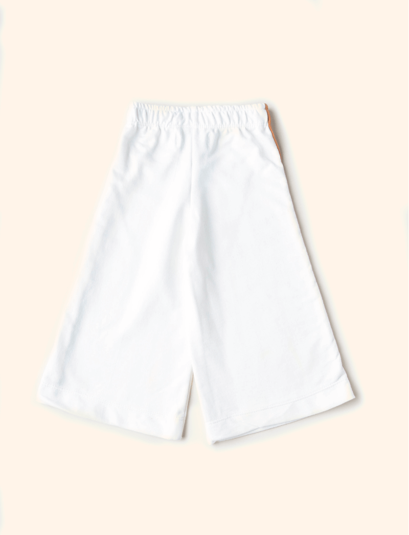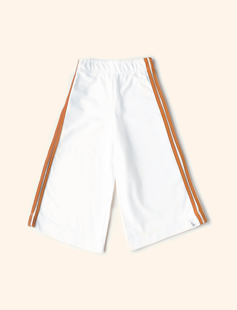 Calça Wide Leg Infantil Listra Branca e Caramelo
