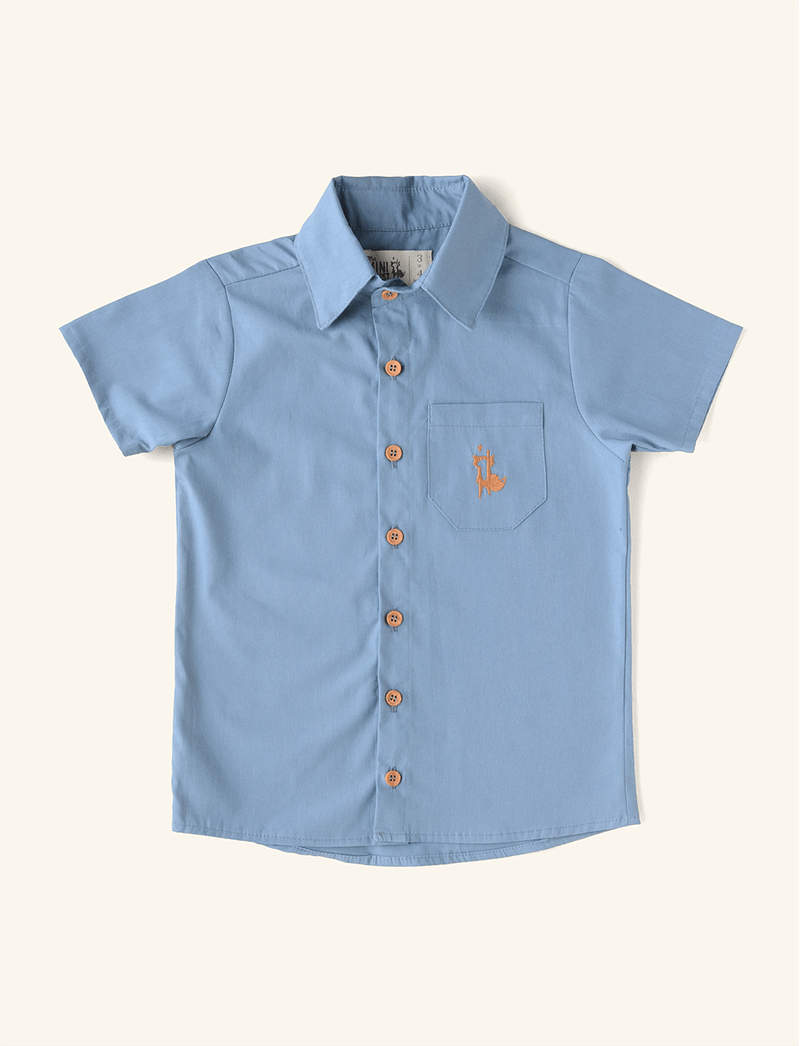 Camisa Unissex com mangas curtinhas e bolsinho no peito, confeccionada em tecido plano de algodão, que é respirável e fresquinho, perfeito para usar nos dias mais quentes. Tem fechamento na parte frontal, feito por botõezinhos, além de um bolsinho que é puro charme, com o bordado da raposinha mais amada da floresta.