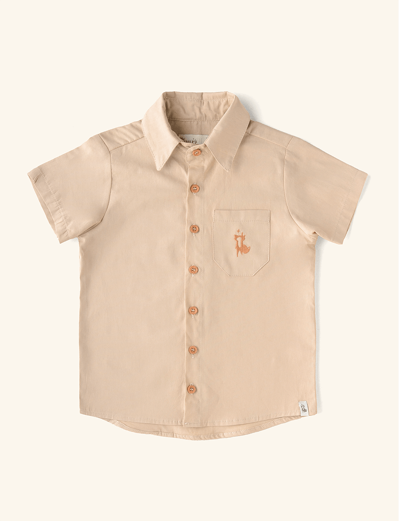 Camisa Unissex com mangas curtinhas e bolsinho no peito, confeccionada em tecido plano de algodão, que é respirável e fresquinho, perfeito para usar nos dias mais quentes. Tem fechamento na parte frontal, feito por botõezinhos, além de um bolsinho que é puro charme, com o bordado da raposinha mais amada da floresta.