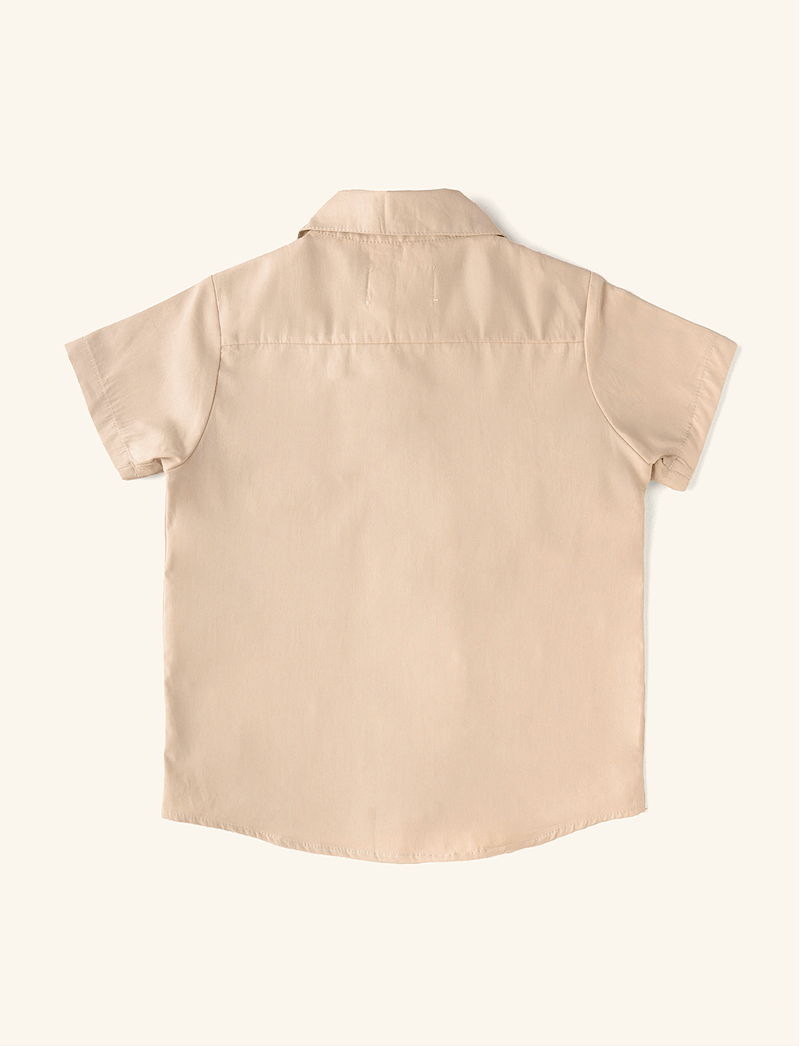 Camisa Infantil Bolso Bordado Bege