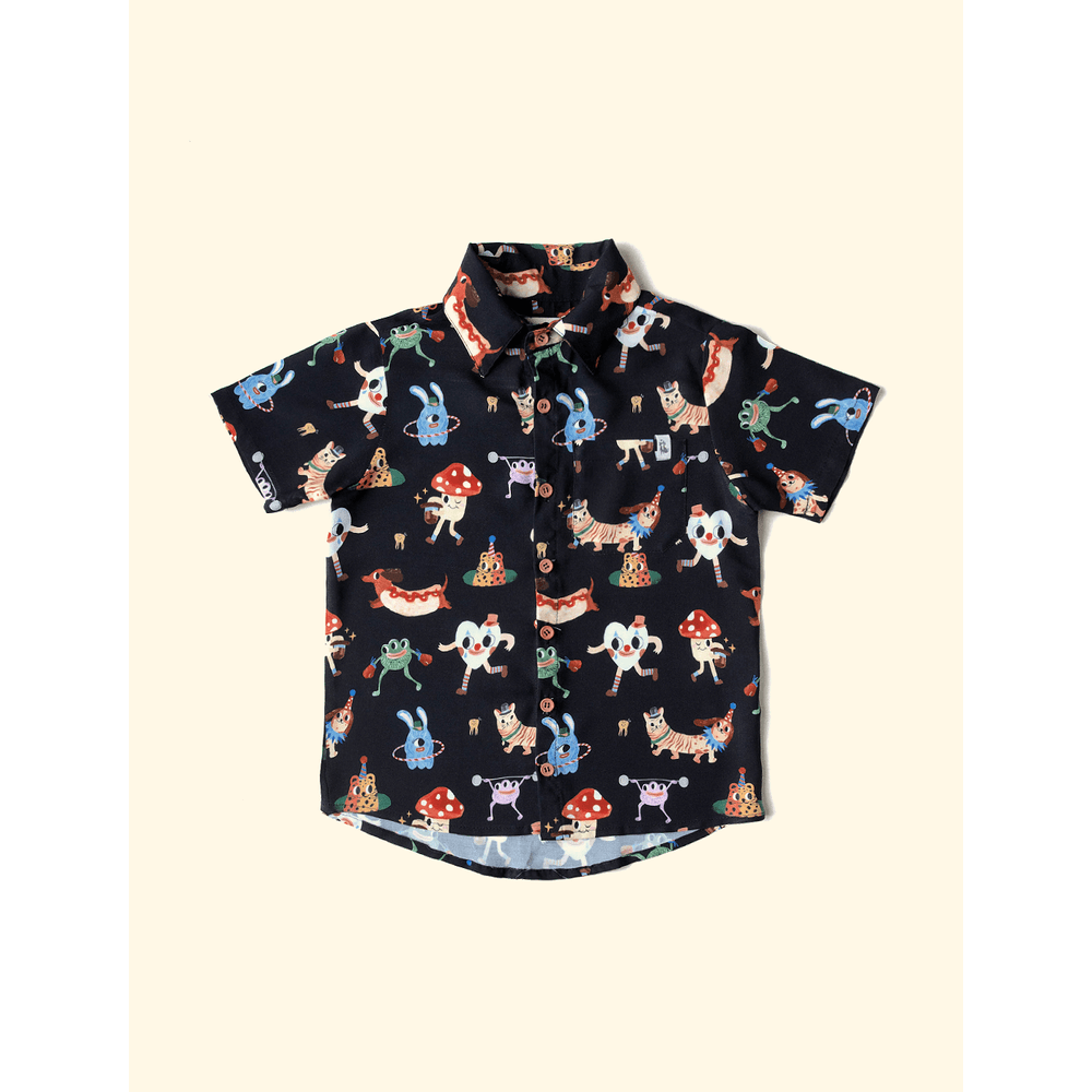 Camisa infantil The Mini Forest Unissex de mangas curtas e bolsinho no peito, confeccionada em tecido plano de viscose de madeira de reflorestamento (com certificado) que, além de muito leve e fresquinha, não agride o meio ambiente. Esse modelinho tem fechamento na parte frontal, feito por meio de botõezinhos.