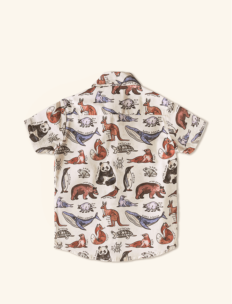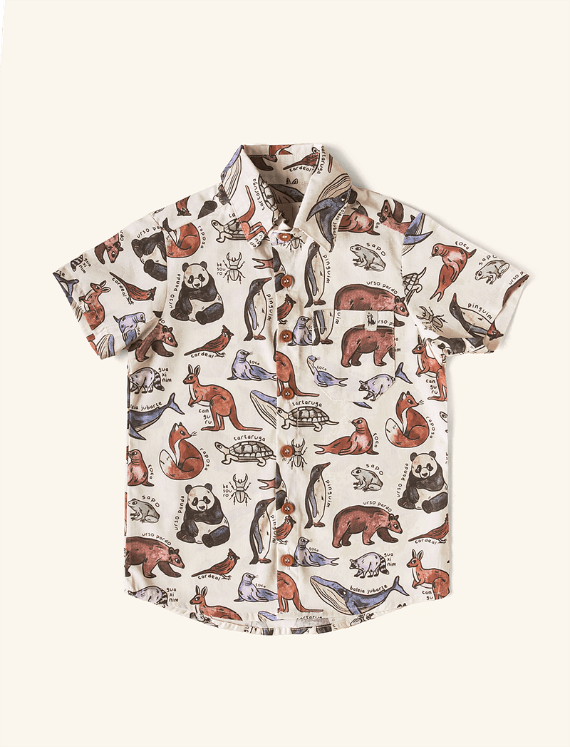 Camisa Unissex com mangas curtinhas e bolsinho no peito, feita em tecido plano de algodão, além de muito leve é fresca, permitindo que as crianças transpirem livremente. Tem fechamento na parte frontal, feito através de botõezinhos, além de bolsinho que é puro charme.
