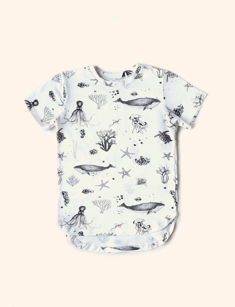 Camiseta Infantil Alongada Magia Marinha Offwhite