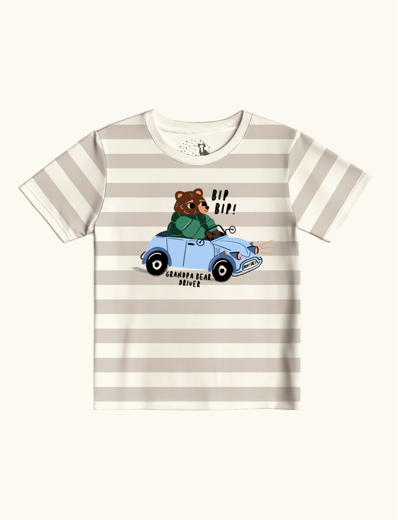 Além do listrado que tanto amamos, a The Mini Forest traz a estampa do vovô urso dirigindo seu carrinho pelos nossos bosques.