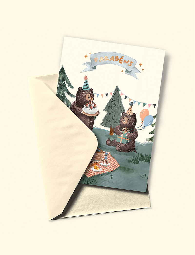 Cartão dobrável The Mini Forest, feito em papel couche 300 com acabamento brilho e interior em branco, para você escrever o seu recadinho para o presenteado. Trazendo algumas das estampas mais amadas da nossa florestinha, os cartões tem detalhes em hot stamping dourada, colocando pontos de luz localizados em alguns elementos. Acompanha envelope colorido (as cores e o tom do envelope pode variar de acordo com o lote do produto). Medidas aproximadas (já dobrado): 10,5cm X 15cm *Imagem meramente ilustrativa. **ATENÇÃO: Os cartões são enviados em branco, sem possibilidade de manipulação por nossa equipe antes do envio.