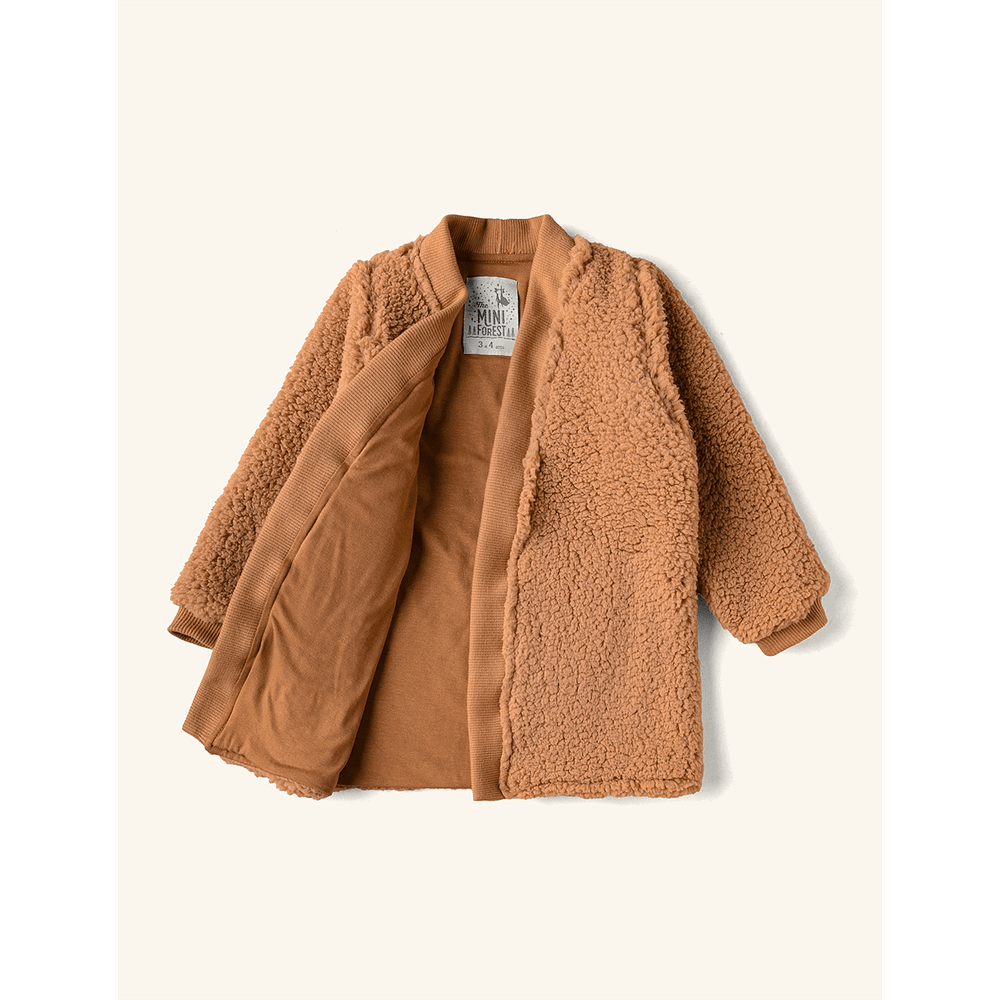 Casaco infantil de frio Unissex The Mini Forest de modelagem retinha e mangas longas, confeccionado em pelinho de carneiro sintético, antialérgico, macio e muito quentinho. Esse modelo tem acabamento em retilínea e interior revestido em viscolycra, que deixa a peça super macia no toque com a pele sensível das crianças. Nesse modelinho, a The Mini Forest investe nos lisos para combinar com o mundo de estampas que já existem em nosso bosque.