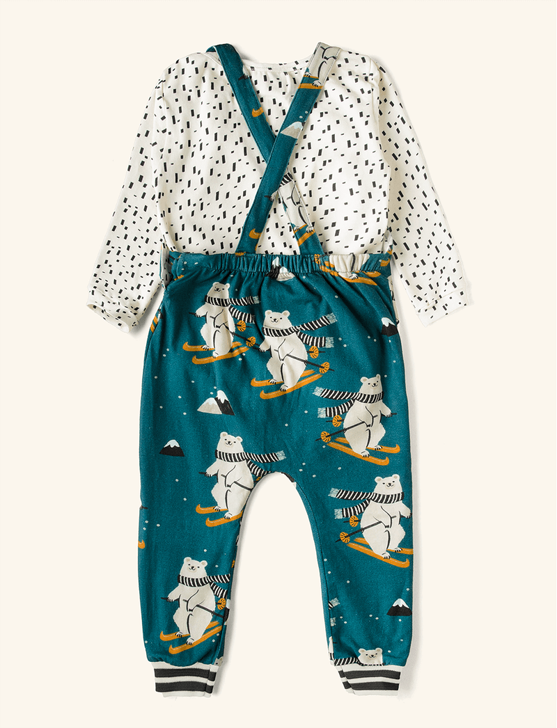 Nesse modelo, a The Mini Forest traz estampa de ursinhos praticando um esporte muito divertido e gelado: o esqui!