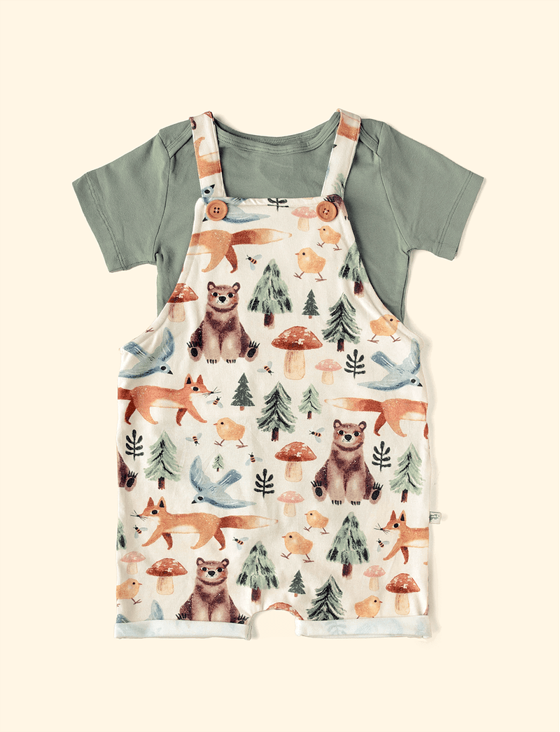 Conjunto Infantil Jardineira e Body Trilha dos Sonhos Baunilha
