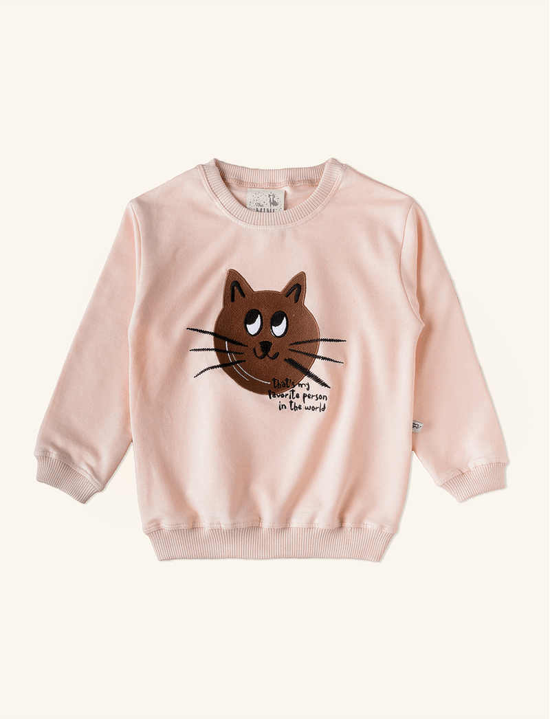 Conjunto Infantil Moletom e Calça Flare Gatinho Coral