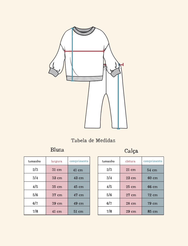 Conjuntinho infantil The Mini Forest composto por duas pecinhas, sendo uma calça de modelagem flare e a outra blusa de moletom. A calça é em malha macia e tem elástico na cintura, para melhorar o ajuste no corpinho das crianças, já a blusa é larguinha em moletom de algodão, tem bordado localizado e retilínea nas manguinhas.