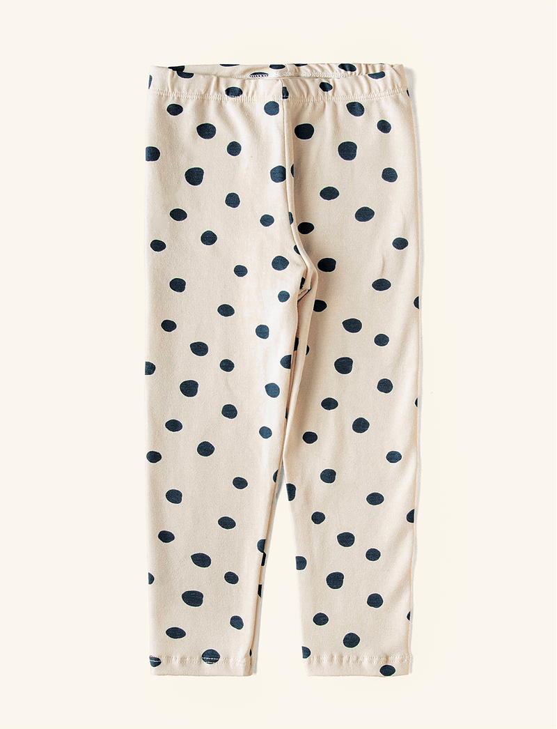 Nesse modelo, a The Mini Forest traz estampa de bolinhas na calça e bordadinho na blusa, de maçanzinha.