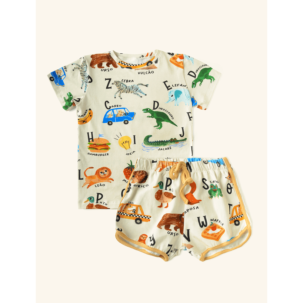 Pijama Infantil Unissex The Mini Forest, composto por shortinho e blusa de manga curta, confeccionado em malha de algodão e elastano, que é macio e maleável, o que torna a hora do sono muito mais confortável para as crianças.