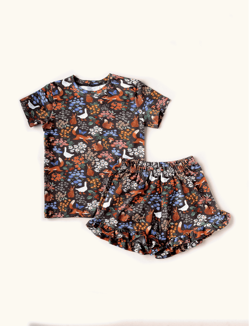 Pijama Infantil The Mini Forest unissex perfeito para os dias de calor. É composto por shortinho e blusa de manga curta, confeccionado em malha de algodão e elastano, que é macio e maleável, o que torna a hora do sono muito mais confortável para as crianças.