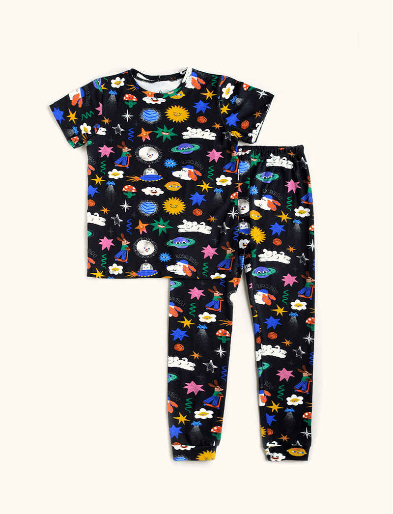 Pijaminha Infantil Unissex The Mini Forest, composto por calça e blusa de manga curtinhas. Esse modelinho é confeccionado em malha de algodão e elastano, que torna a peça macia e maleável, deixando a hora da soneca muito mais confortável para as crianças. Esse pijaminha tem elástico na cintura da calça para ficar certinho nos pequenos, com punho na barra para a calça não subir.