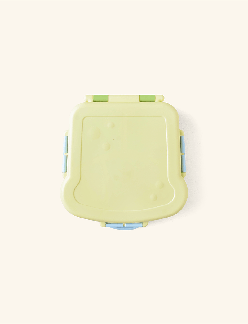 Já o Bento Box tem fechamento anti vazamento, com 4 divisões internas fixas, além de acompanhar um potinho avulso com 60ml e 2 talheres (1 colher e 1 garfinho).