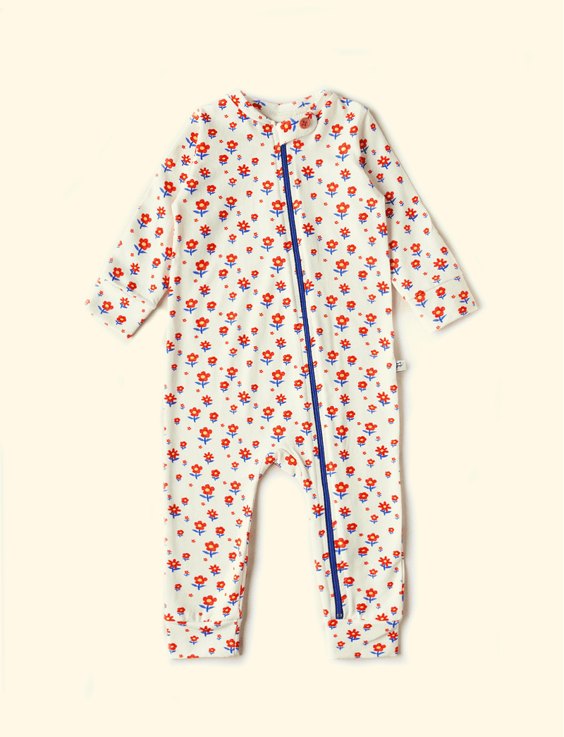 Kit The Mini Forest composto por três macacões de bebê com fechamento frontal em zíper. Um dos macacões tem a estampa do coelhinho mais fofo da floresta, o segundo floral, enquanto o terceiro traz o clássico poá.