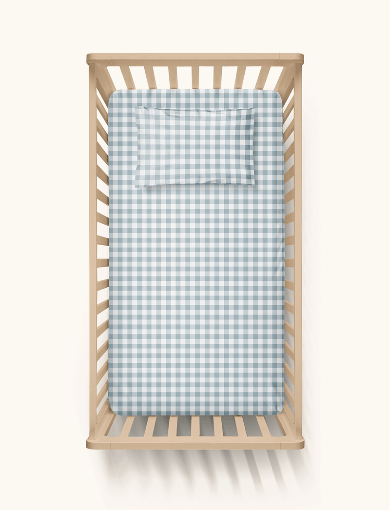 Lençol de Berço e Fronha Xadrez Azul
