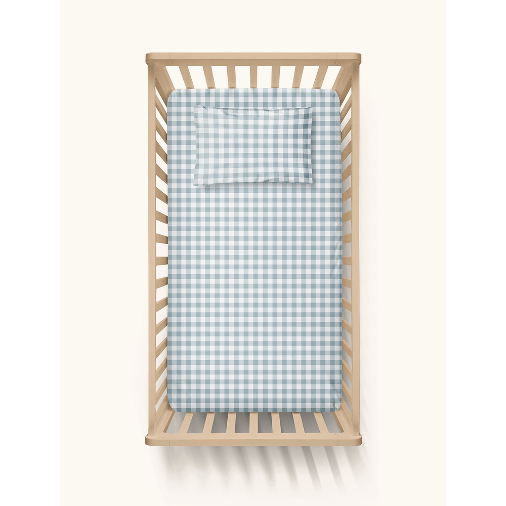 Lençol de Berço e Fronha Xadrez Azul - Único