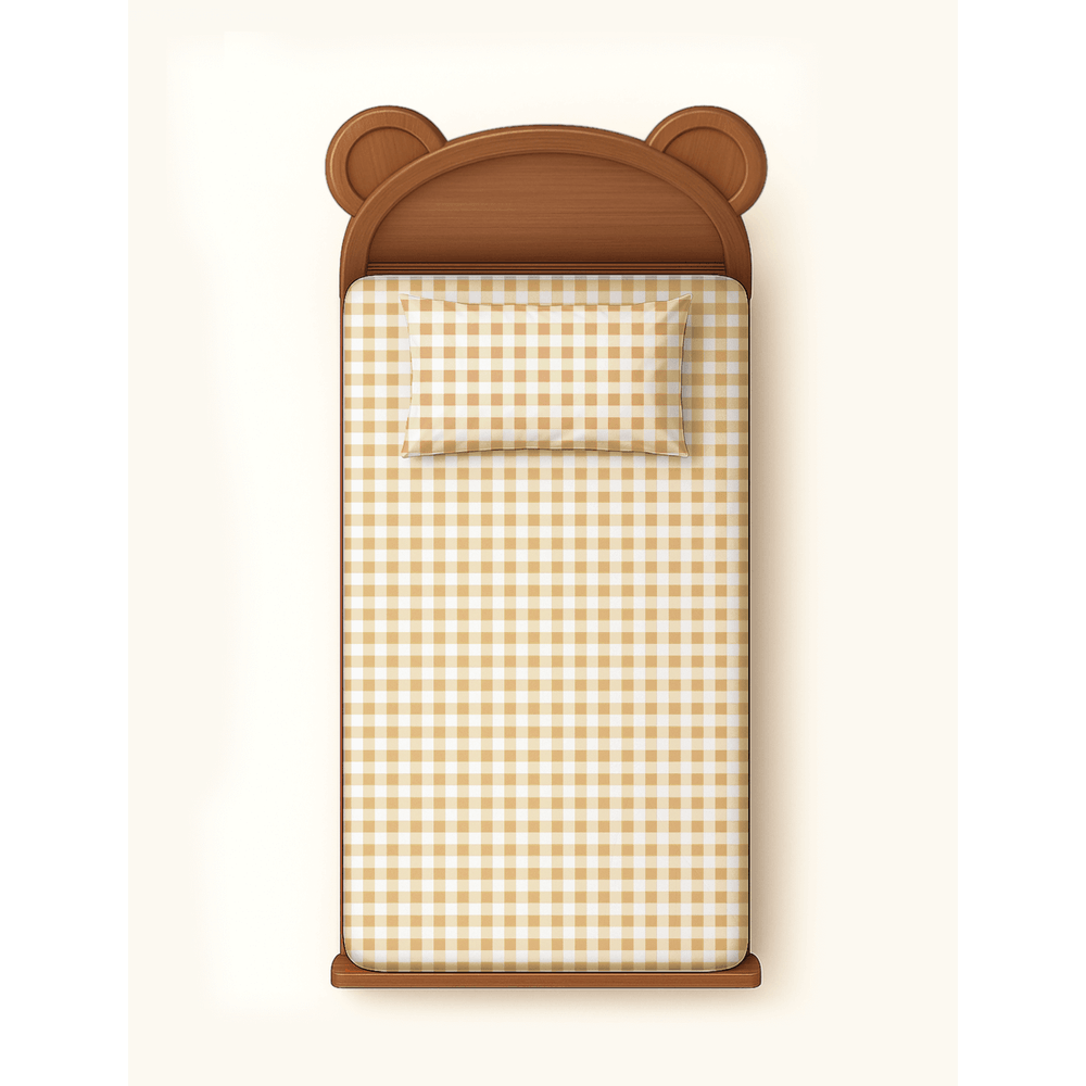 Lençol Solteiro e Fronha Xadrez Mostarda - Único