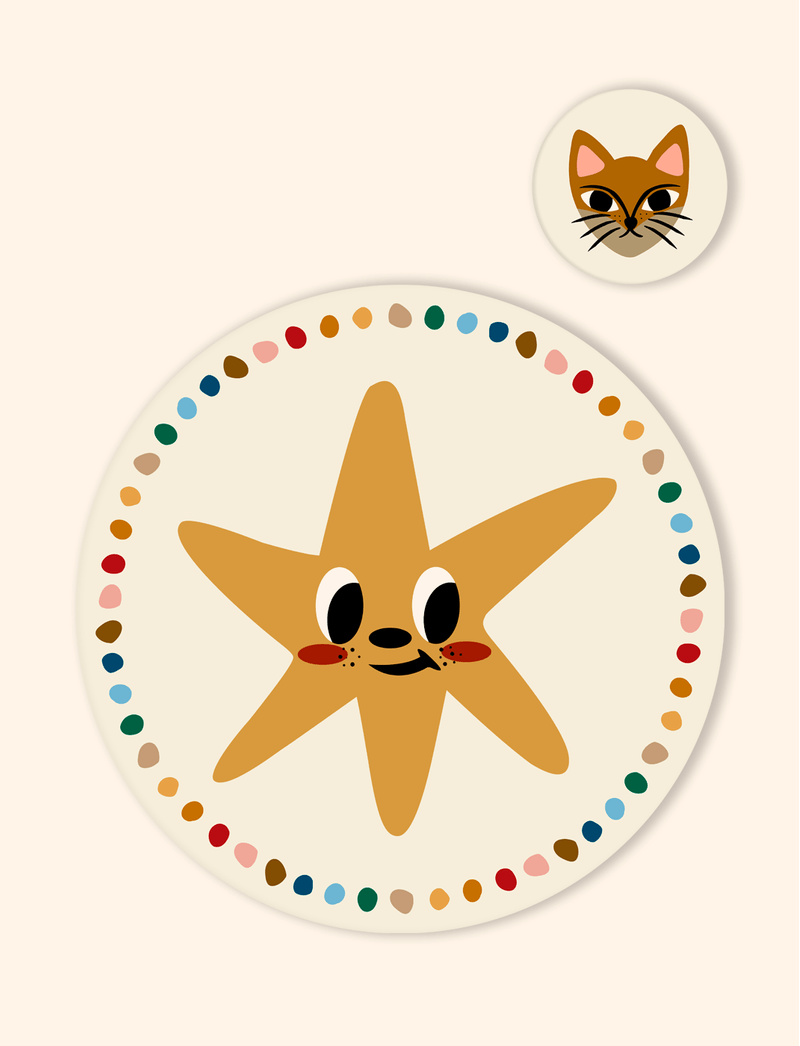 Nesta estampa, a The Mini Forest traz o porta copos com raposinha e o lugar americano com estrelinha e bolinhas coloridas
