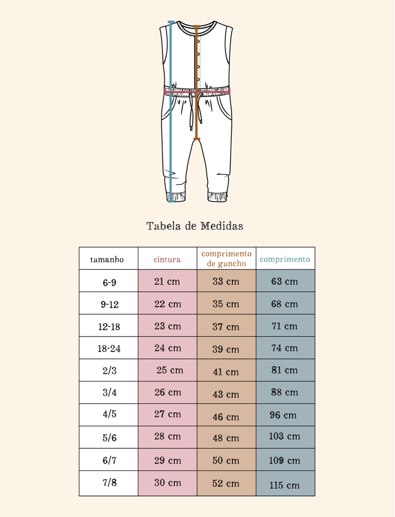 Macacão Infantil The Mini Forest comprido e sem mangas, confeccionado em malha de algodão com elastano, que é fresquinho e tem o toque macio para a pele das crianças. Traz o fechamento frontal feito por meio de botõezinhos, elástico na cintura, cordãozinho para amarração e bolsinhos laterais.