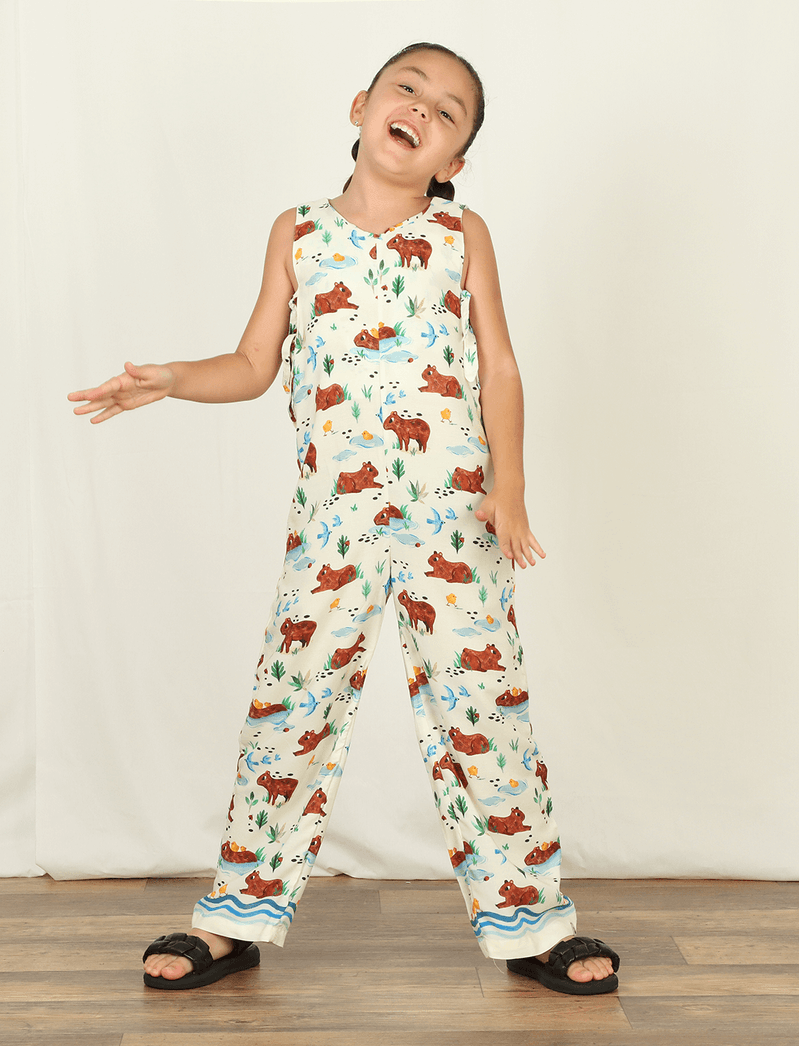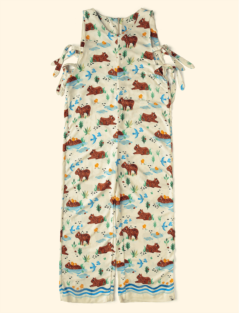Nesse modelo, a The Mini Forest traz estampa de várias capivaras se refrescando à beira d'água.
