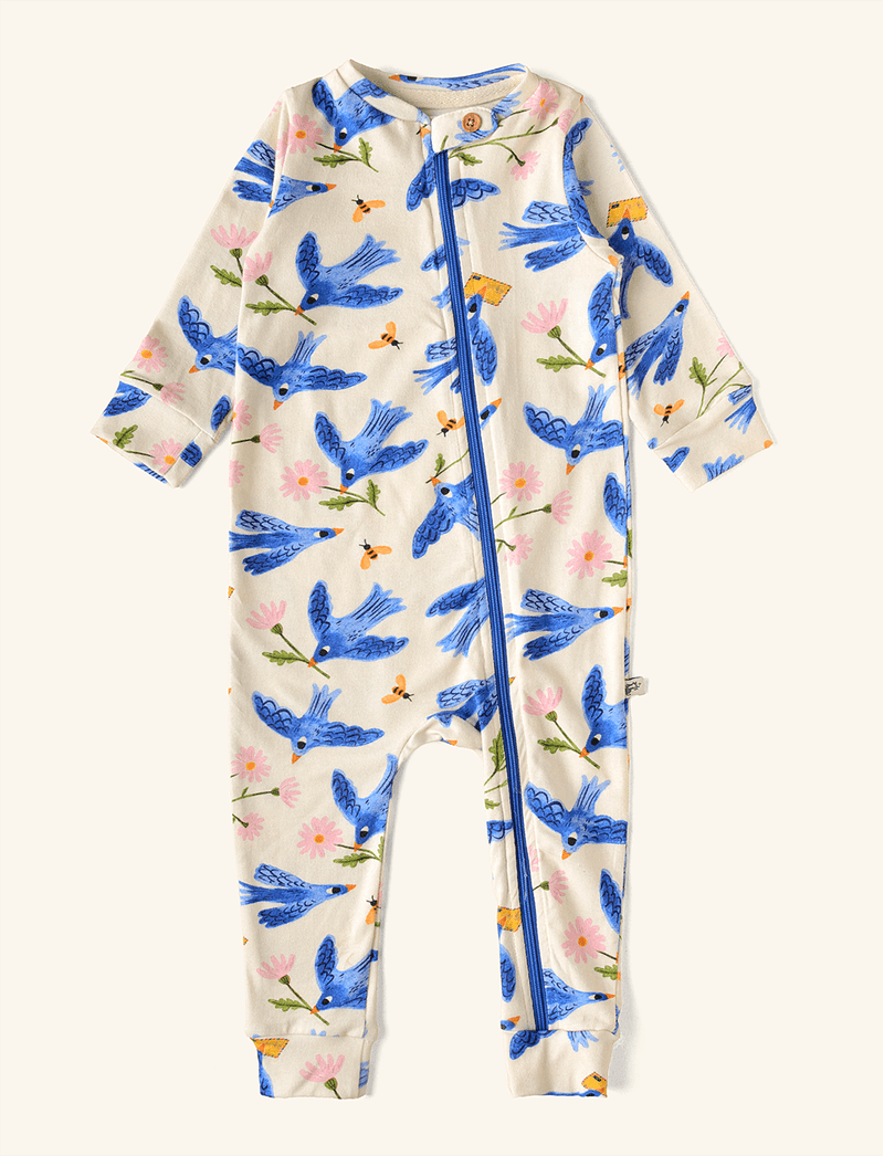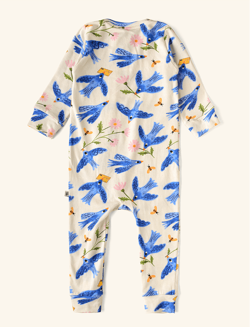 Macacão de Bebê Zíper Andorinha Azul Baunilha