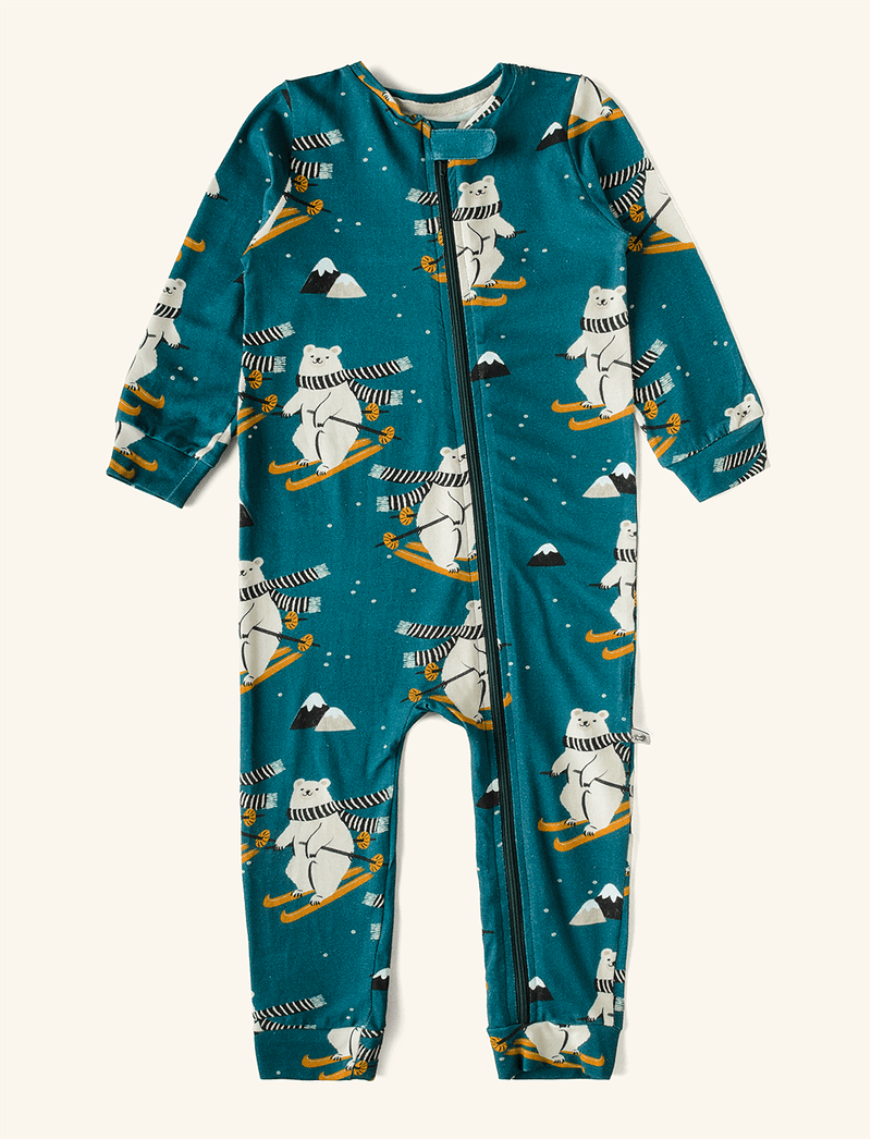 Nesse modelo, a The Mini Forest traz estampa de ursinhos praticando um esporte muito divertido e gelado: o esqui!