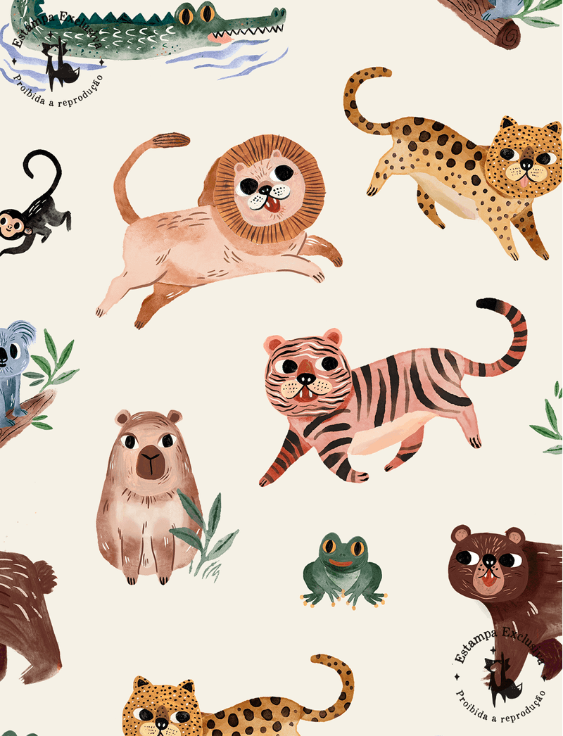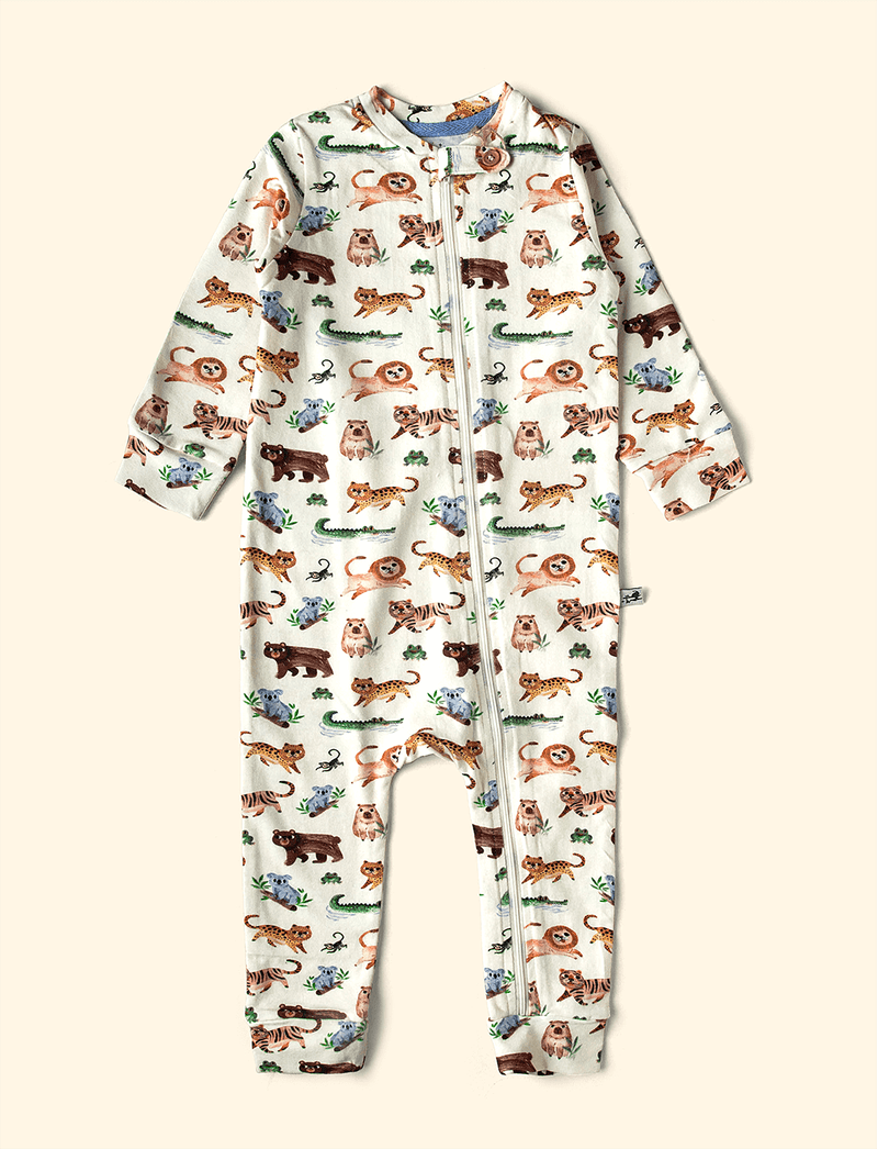 Macacão de Bebê Zíper Fauna Feliz Baunilha