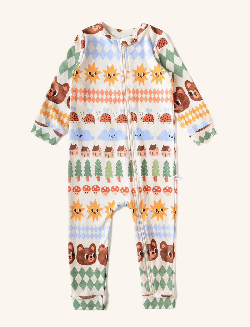 A estampa traz vários bichinhos que vivem na Floresta da The mini Forest, formando listras super divertidas.