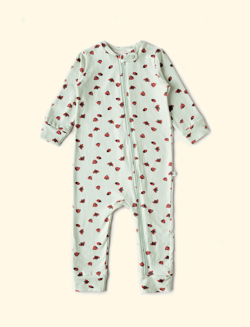 Com as joaninhas reunidas em uma única estampa, essa estampa da The Mini Forest faz elas parecerem pequenos pontinhos vermelho em fundo verde clarinho.