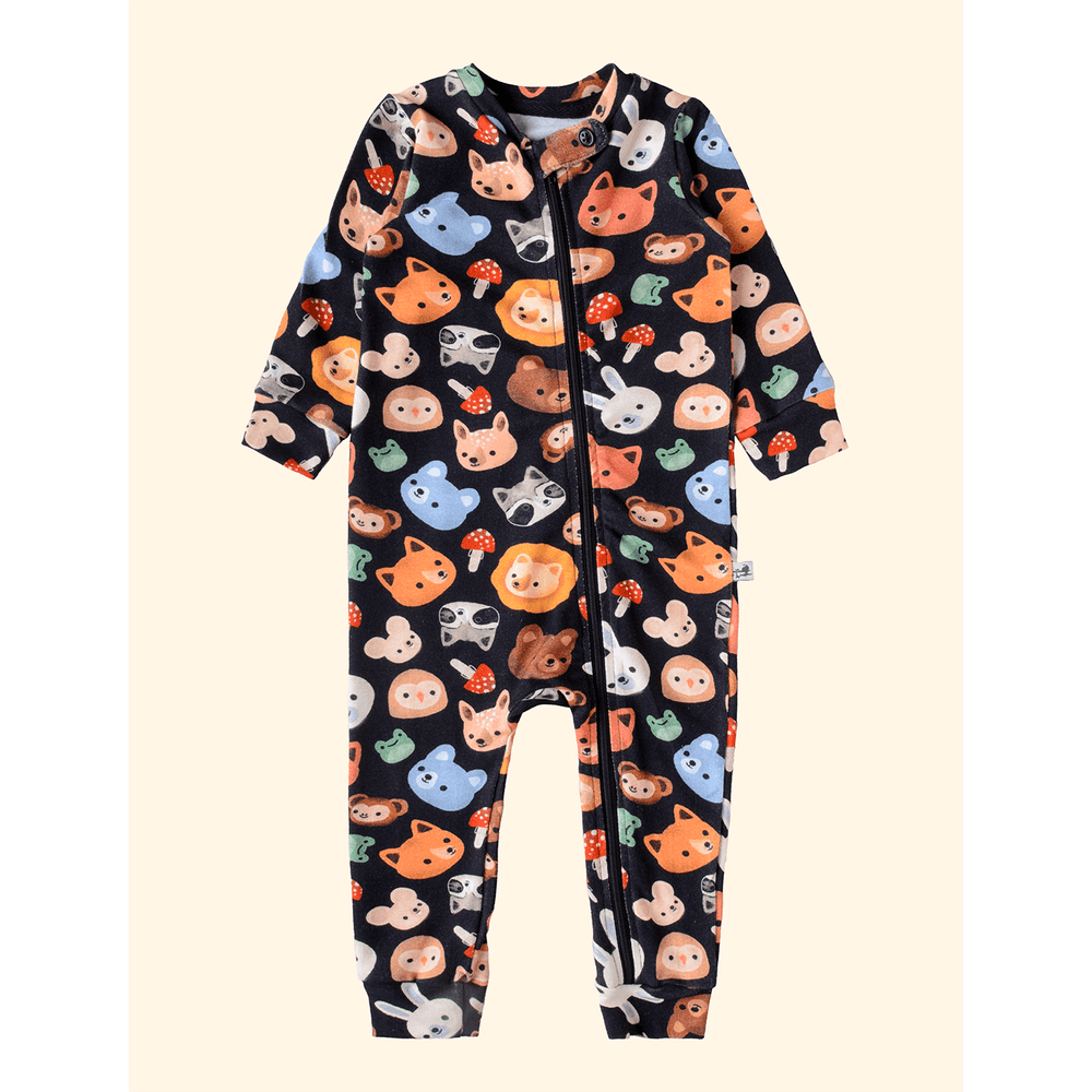Macacão de Bebê Zíper Máscaras da Fauna Preto