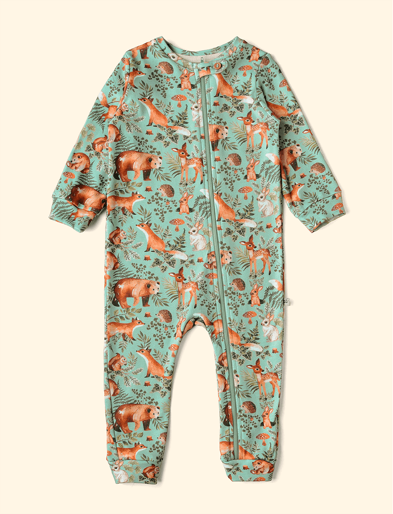 Macacão de Bebê Zíper Mistérios do Bosque Verde