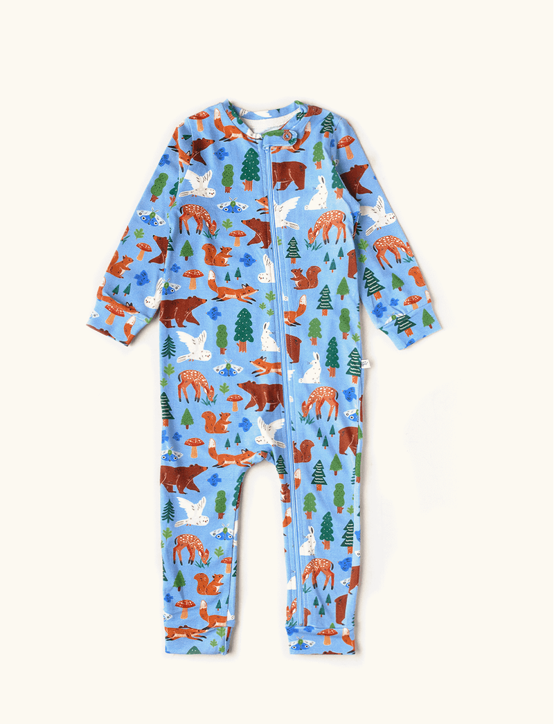 Macacão Unissex The Mini Forest para bebês, com mangas longas e feito em malha de algodão e elastano, que é macia e tem boa elasticidade, tornando a peça muito confortável para os pequenininhos. O fechamento é frontal e feito por zíper, que vai do pescoço até o tornozelo de um dos lados, além de ter acabamento protegendo o zíper por dentro, evitando o contato com a pele sensível dos nenéns.