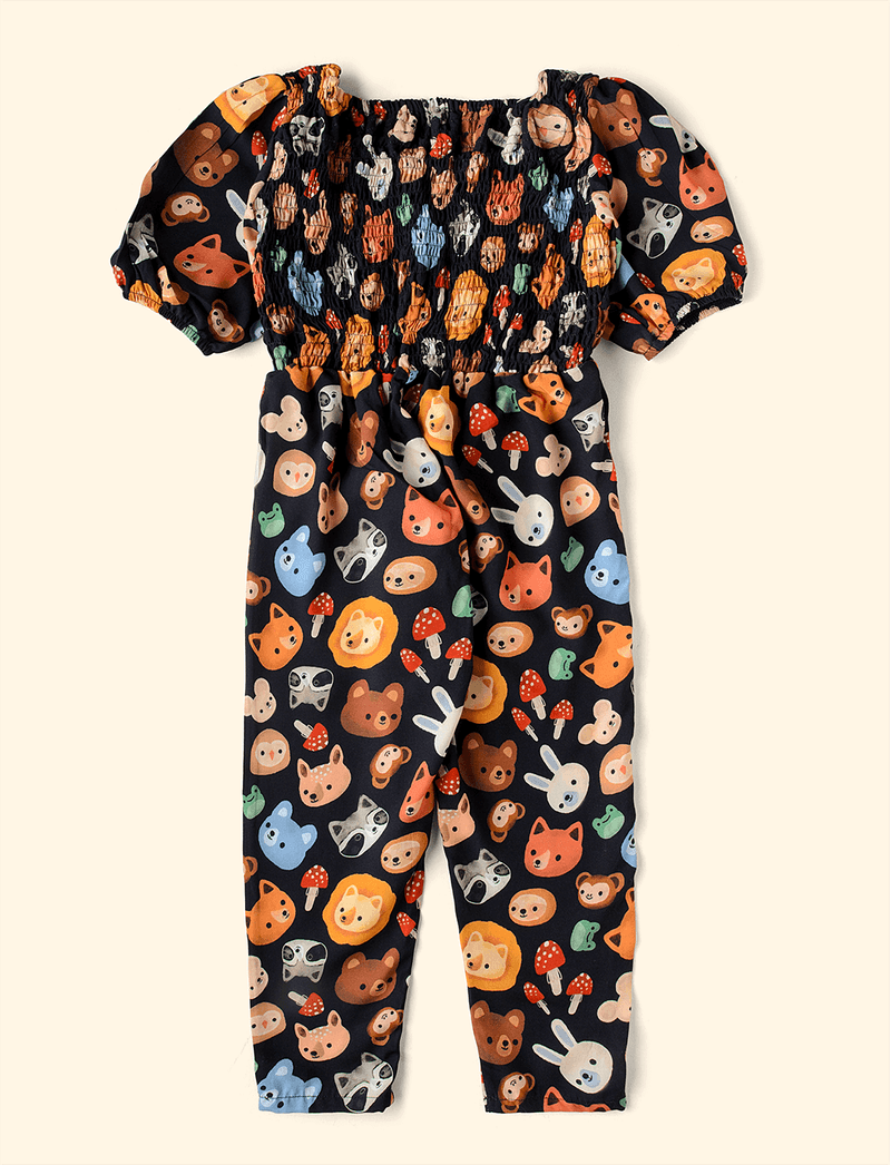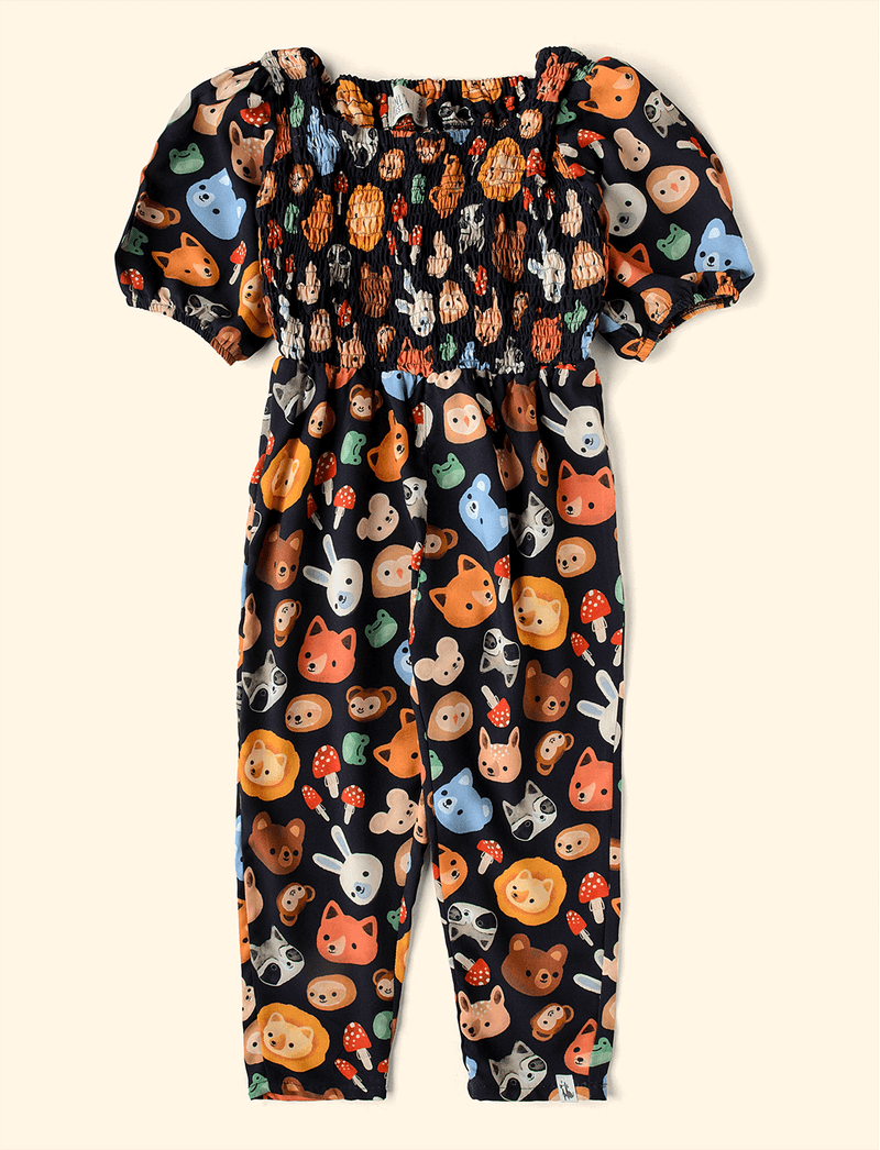 Macacão Infantil Lastéx Máscaras da Fauna Preto