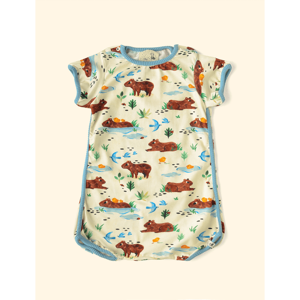 Nesse modelo, a The Mini Forest traz estampa de várias capivaras se refrescando à beira d'água.