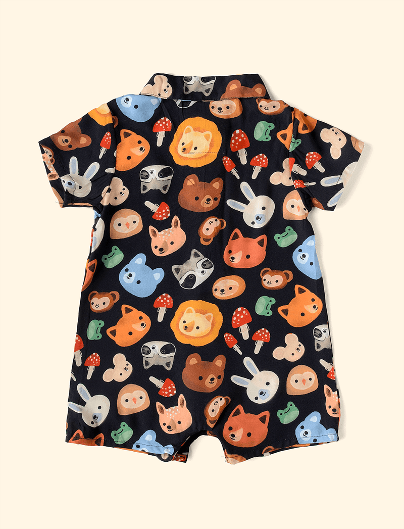 Macaquinho Infantil Botões Máscaras da Fauna Preto