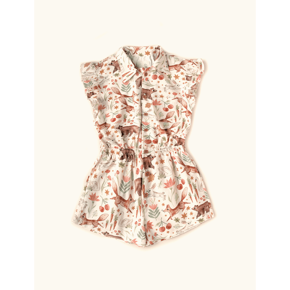 Macaquinho Infantil Gola Acinturado Floresta dos Sonhos Baunilha