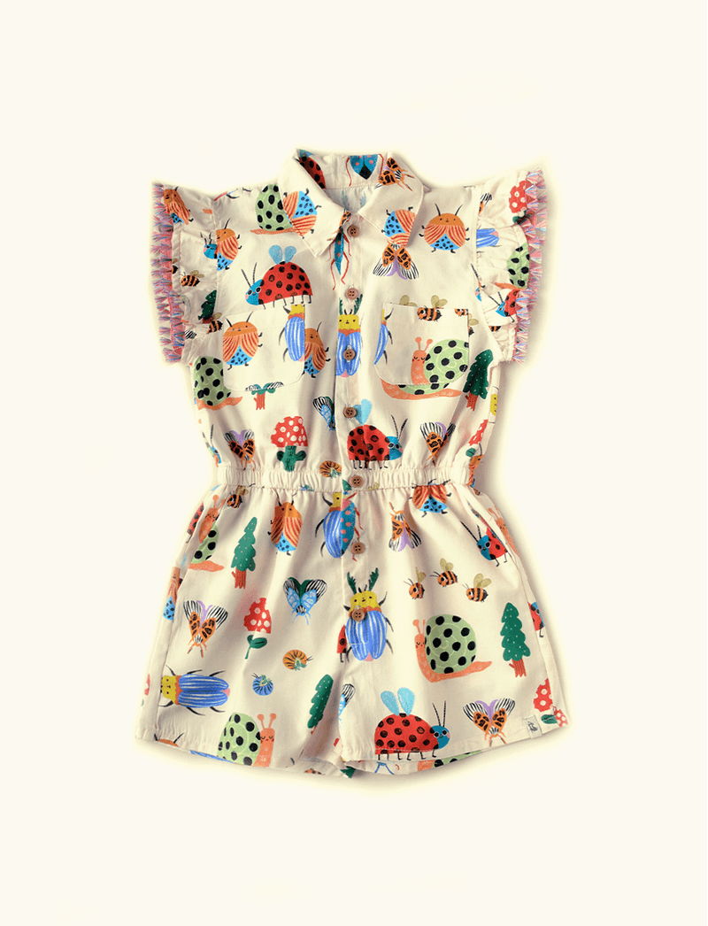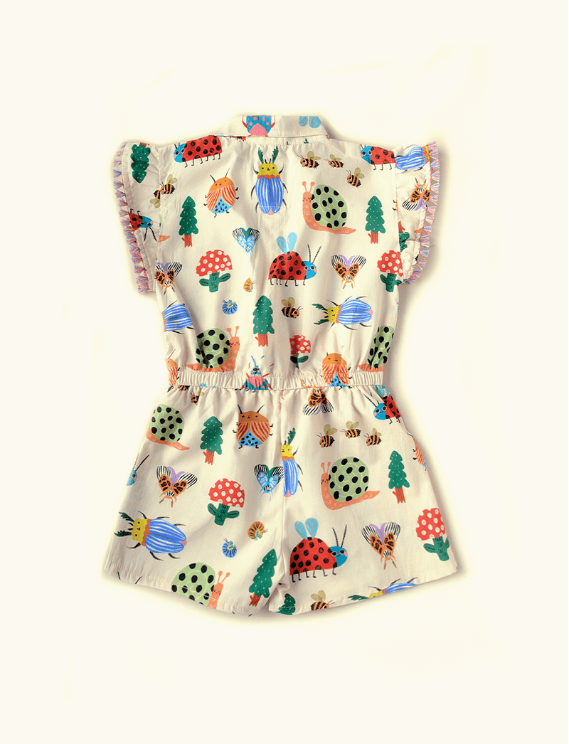 Macaquinho Infantil The Mini Forest super levinho, confeccionado em tecido plano de algodão, perfeito para acompanhar as crianças nos dias de calor, pois é muito fresquinho e leve. Esse modelo tem fechamento feito através de botõezinhos na parte frontal, modelagem acinturadinha com elástico e aplicação de babadinhos nas mangas.