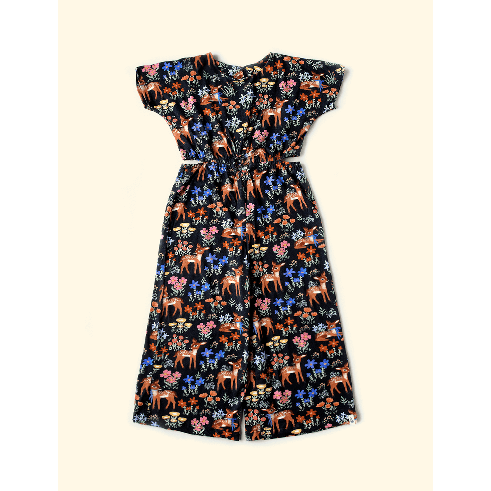 Macacão Infantil Recorte Cintura Jardim dos Cervos Preto