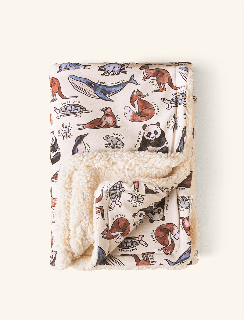 Manta de Bebê Inverno "Que Animal é?" Baunilha