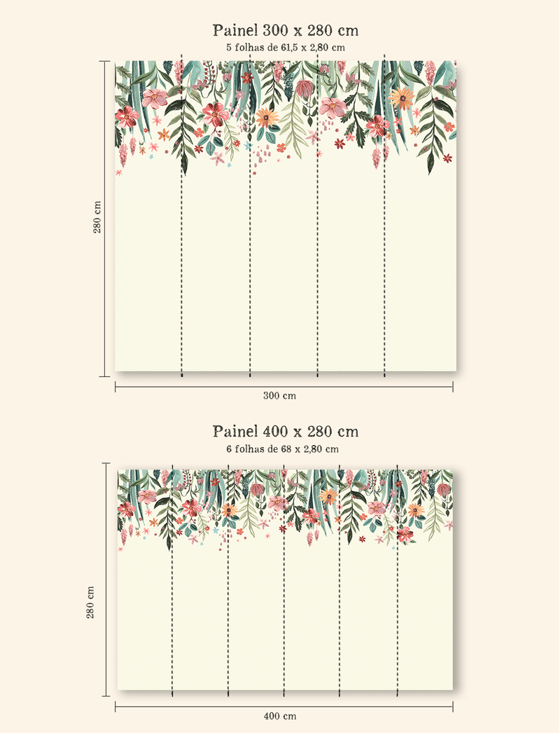 Super versátil, pode ser aplicado com as flores partindo do chão ou do teto, de acordo com cada gosto! A impressão é feita em alta-resolução e tem o verso cinza, o que evita a transparência e permite a aplicação em paredes pintadas com cores fortes