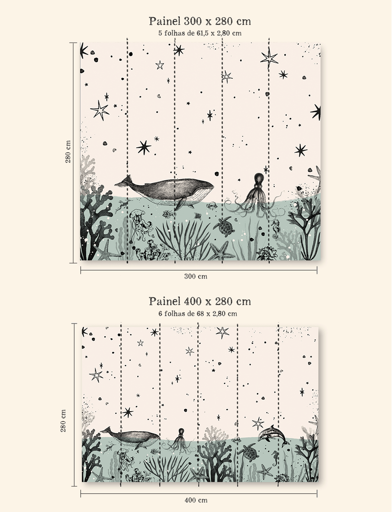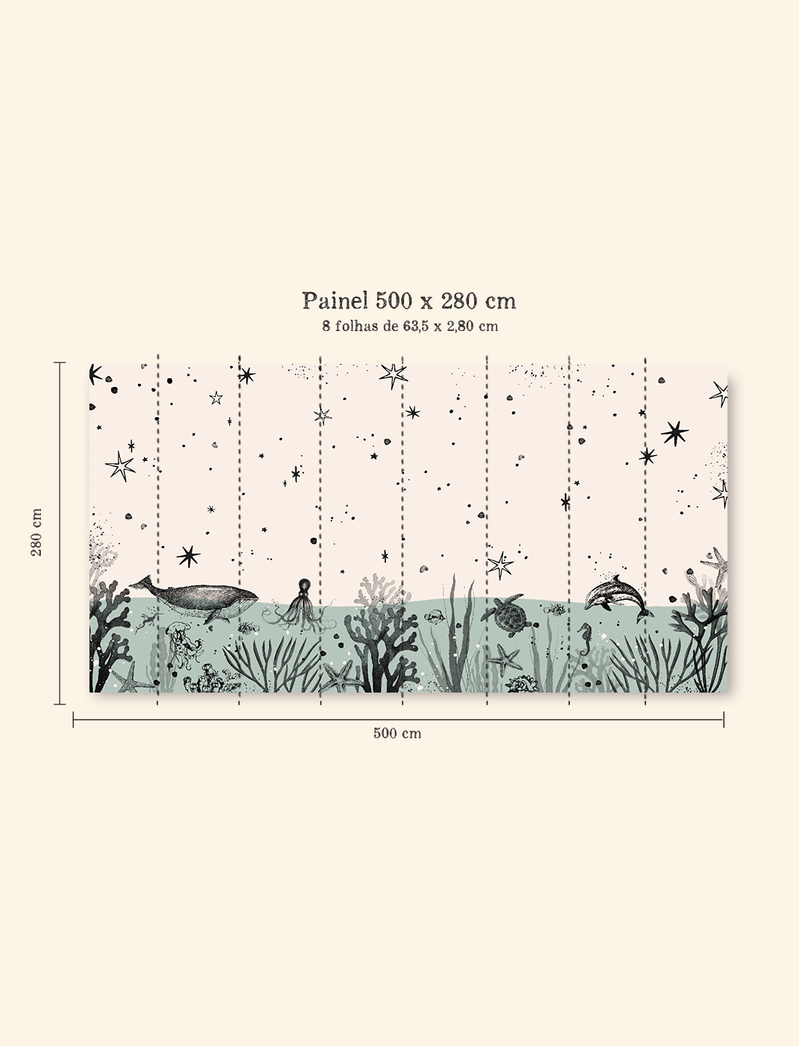 Painel de parede The Mini Forest, sem relevo e sem textura. É feito em Vinil autoadesivo, com acabamento fosco, portando não reflete a iluminação e não é necessário o uso de cola para a aplicação. Super fofo, convida quem entra no ambiente a mergulhar no fundo dos mares da The Mini Forest! A impressão é feita em alta-resolução e tem o verso cinza, o que evita a transparência e permite a aplicação em paredes pintadas com cores fortes. Por ser à base de água, o painel não apresenta odor forte e nem toxidade, sendo perfeito para instalação em ambientes infantis. Advertências de Uso: - Deve ser aplicado em superfícies lisas e limpas: paredes com acabamento LISO e demão de tinta. Não aplicar em superfícies com pontos de bolores, rachaduras e/ou poeira; - Certifique-se de comprar a quantidade de material necessária, pois todo produto impresso sofre diferença de tonalidade quando há mudança no lote do material. Caso seja efetuada uma segunda compra do mesmo modelo, poderá haver diferença de cor; - Garanta maior durabilidade limpando apenas com um pano umedecido. Não é recomendada a utilização de produtos químicos para limpeza; - Imagens meramente ilustrativas. Há possibilidade de variação na tonalidade das cores devido à calibração dos monitores residenciais ou por questões de lote do produto. * Verifique as dimensões antes de iniciar a aplicação; * Não será aceita a devolução de produtos já manipulados (caso o adesivo já tenha sido descolado) ou com dobras e marcas de manuseio; * Não nos responsabilizamos pelo mau uso na hora da aplicação do material. * Somente será considerado arrependimento de compra caso o produto esteja em perfeitas condições de comercialização e deverá ser devolvido, obrigatoriamente, em sua embalagem original. * Não produzimos sob medida.