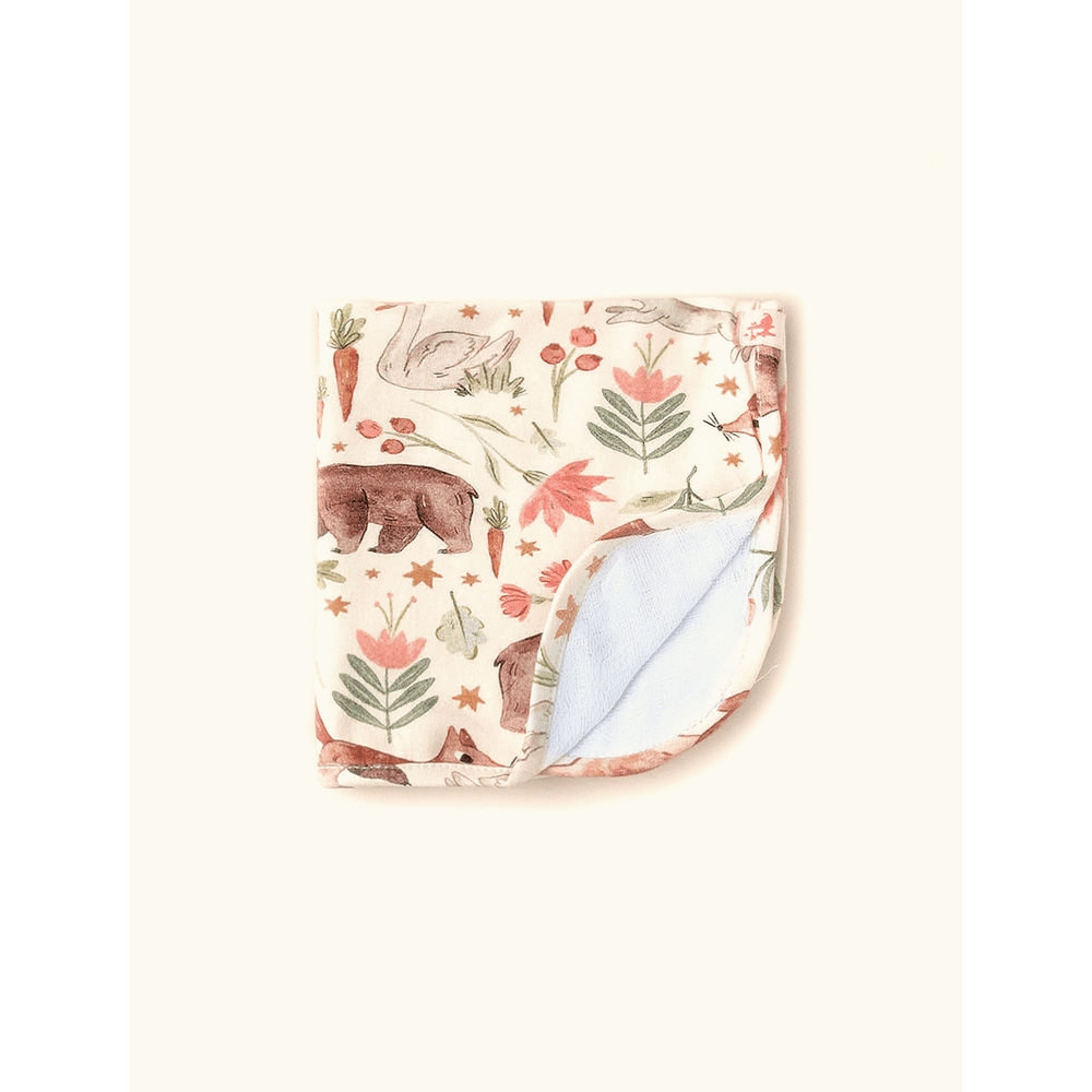 Paninho de boca The Mini Forest feito em algodão com elastano, que tem ótima absorção e maciez. Tem a parte interna em fraldinha de algodão para não machucar a boquinha dos bebês, a externa é em malha estampada e traz os cantos arredondados.