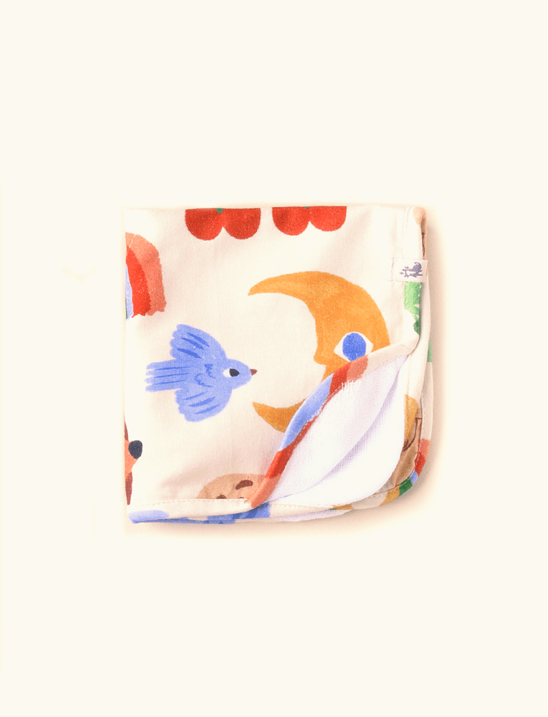 Paninho de boca The Mini Forest feito em algodão com elastano, que tem ótima absorção e maciez. Tem a parte interna em fraldinha de algodão para não machucar a boquinha dos bebês, a externa é em malha estampada e traz os cantos arredondados.