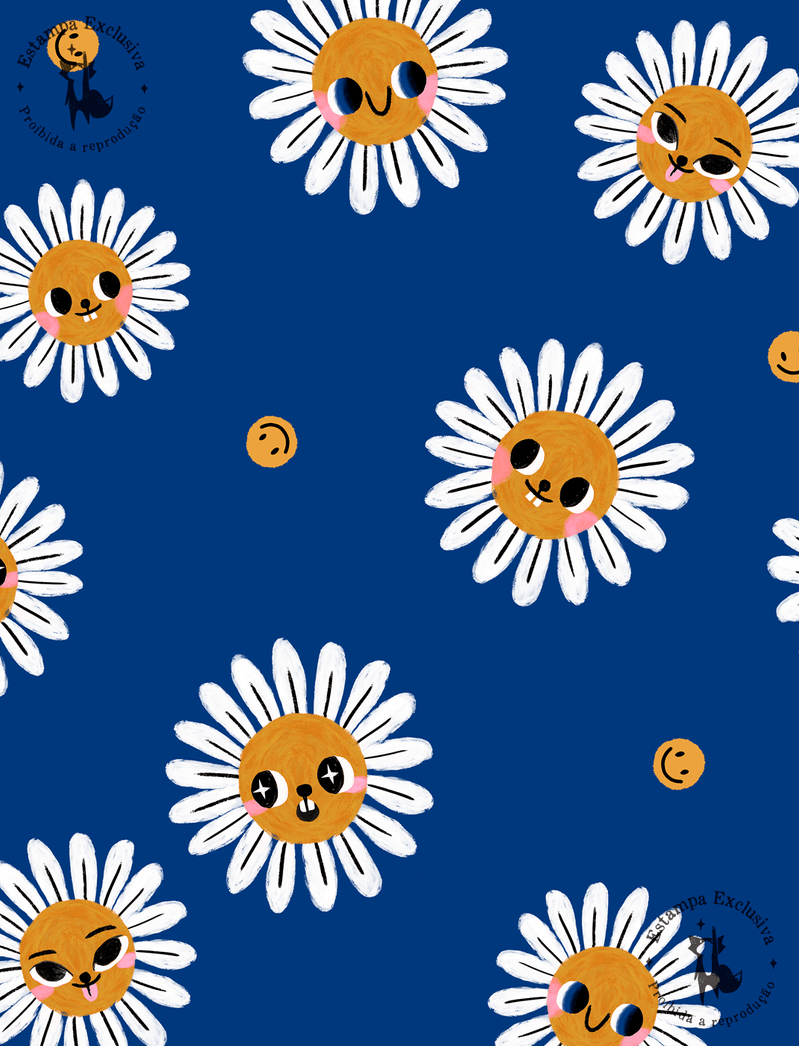 A estampa desse modelinho traz o floral bem descontraído, com várias margaridinhas sorridentes por toda a peça